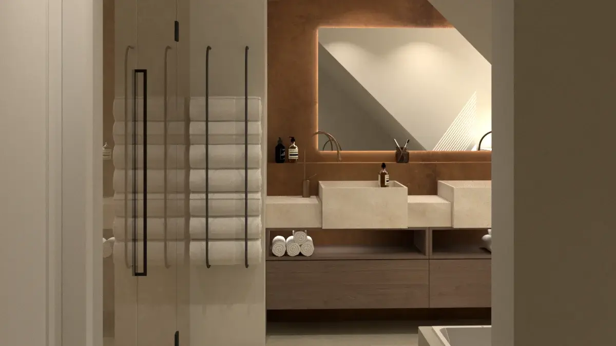 De kleuren zijn in neutrale aarde tinten gehouden zodat de kunst van de klant nog beter naar voren komt.
